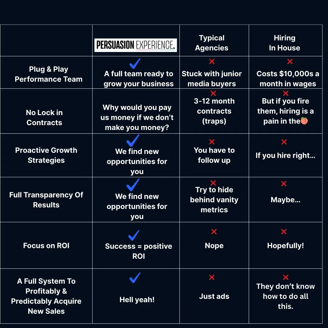 We don’t just work in one niche so your marketing looks like all your competitors … we swipe and deploy strategies from 100s of niches!